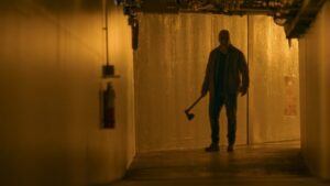 During an evening dinner break, the Sheriff and his Deputy let slip that Maya survived, and is receiving care at the town’s hospital. In a sequence of events that looks very similar to Halloween II (1981), Maya is hunted throughout the hospital by Sack Head. And after escaping, she is unsure who to trust, opting instead to make her way around the woods.